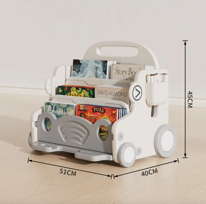 Compacte, maniable et équipée de roulettes, cette mini-bibliothèque permet de ranger facilement livres, jouets et accessoires tout en offrant un espace créatif aux enfants. Elle trouve parfaitement sa place dans une chambre, une salle de jeux ou tout autre coin de la maison.