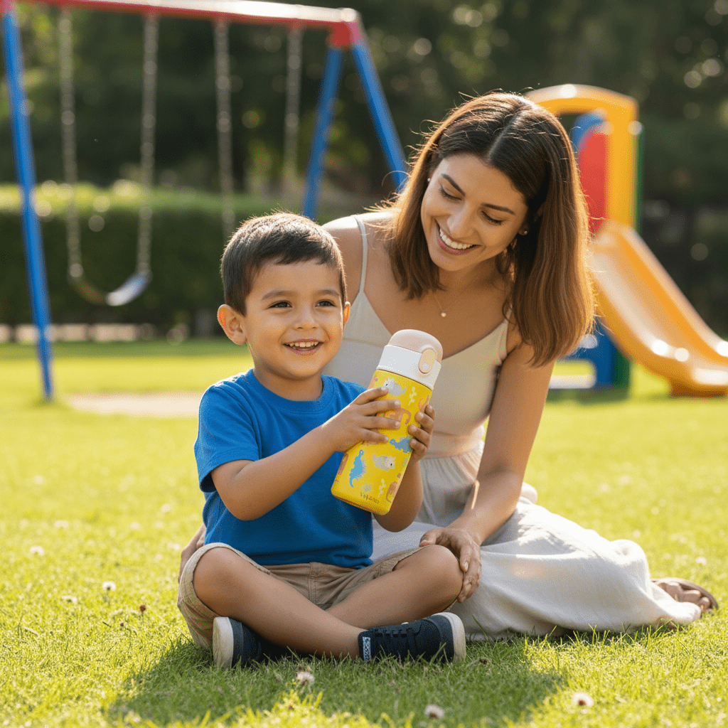 Le Gourde isotherme en acier inoxydable 304 (18/8) avec double paroi isolante qui maintient le liquide froid jusqu'à 24 heures et chaud jusqu'à 12 heures, anti fuite et de facile utilité et facile nettoyage. Avec des motifs modernes pour les filles et les garçons