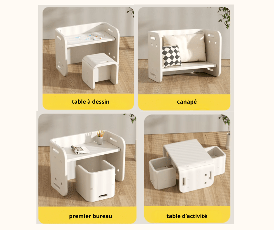 Ensemble Table et Chaise Montessori polyvalente pour enfants - Bureau d'activité- tabouret - chaise-canapé