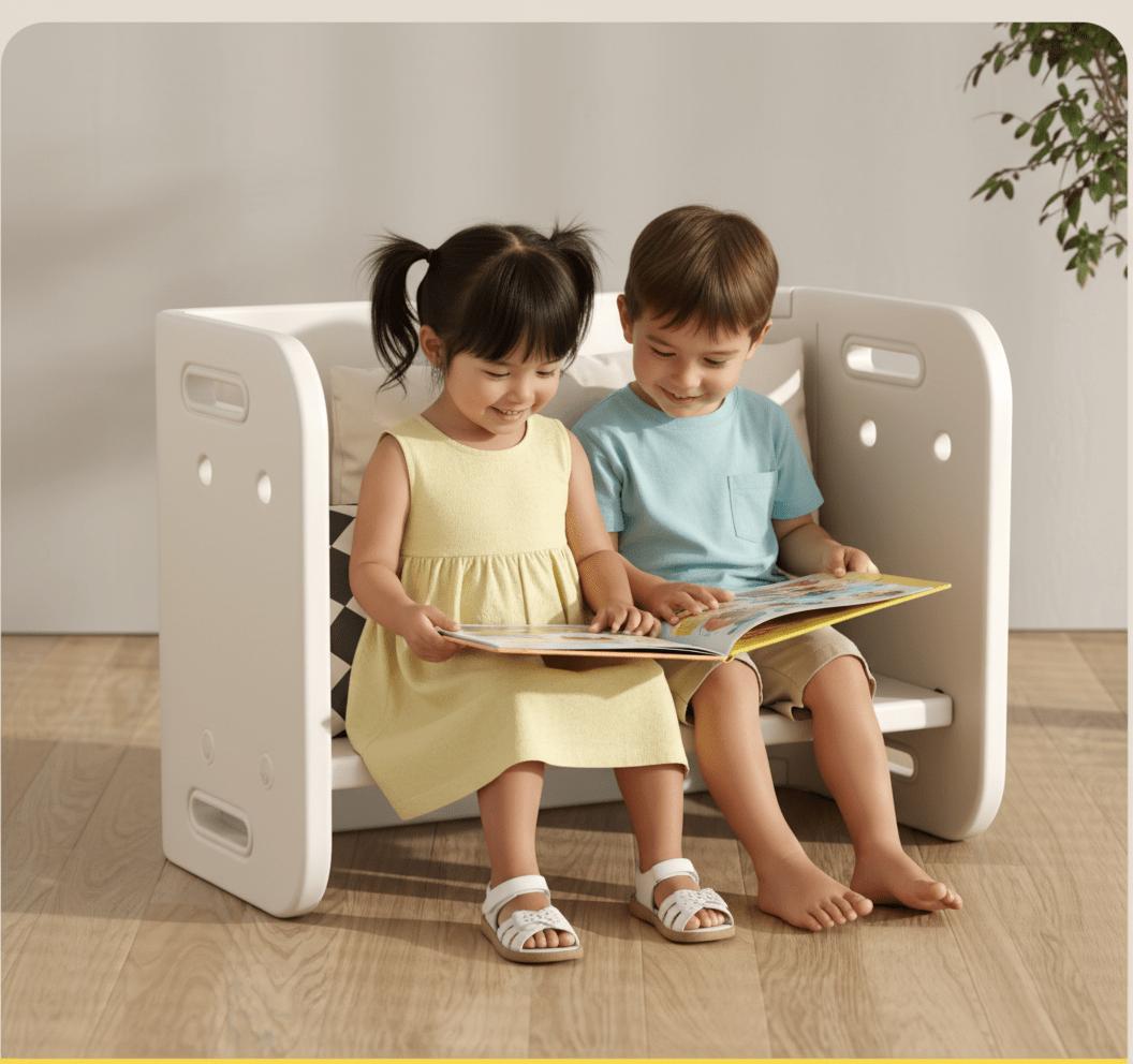 - Bureau pour que votre bébé développe une bonne habitude de lecture indépendante dès le plus jeune âge, chaise, tabouret, canapé et même petite bibliothèque pour économiser de l'espace
